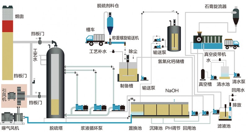 双碱法脱硫工艺,简称双碱法,是常用的烟气脱硫法。